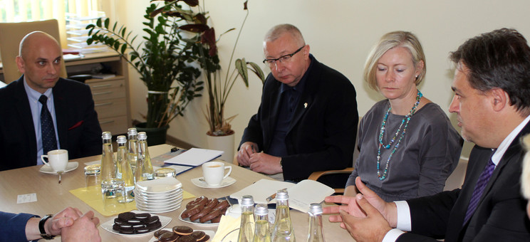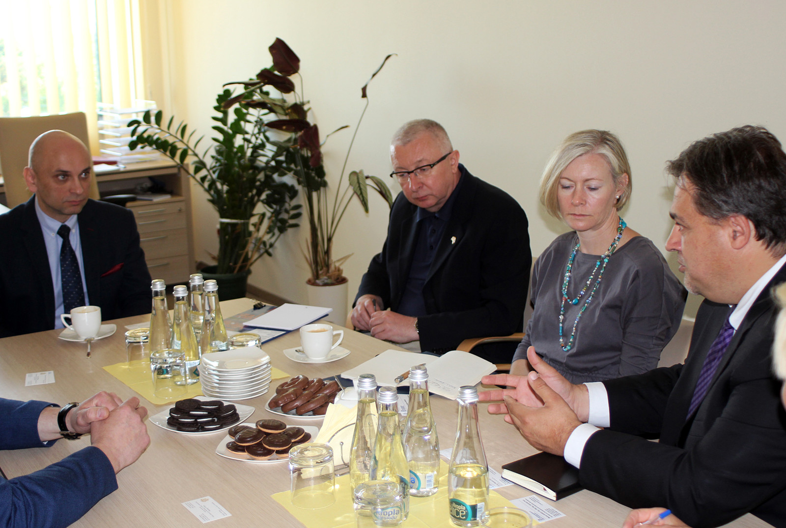 2 czerwca br. Politechnikę Rzeszowską odwiedzili Kathleen Graham z Agencji Ochrony Środowiska (EPA) i Thomas Zia, konsul ds. polityczno-ekonomicznych z Konsulatu Generalnego USA w Krakowie – uczestnicy konferencji Impact'17 w Krakowie. Spotkał się z nimi prof. dr hab. inż. Grzegorz Budzik, prorektor ds. nauki oraz dr hab. inż. Mariusz Oleksy, prof. PRz, prorektor ds. rozwoju i kontaktów z gospodarką. W rozmowach wzięli udział również dr inż. Sławomir Stec, p.o. dyrektor Centrum Transferu Technologii, Maciej Szalacha, p.o. kierownika Laboratorium Badawczego Aeoropolis, Marek J. Guzik, specjalista ds. polityczno-ekonomicznych z Konsulatu Generalnego USA w Krakowie, oraz Izabela Misiewicz-Santos, asystentka ds. energii i nauki z Ambasady USA w Warszawie.