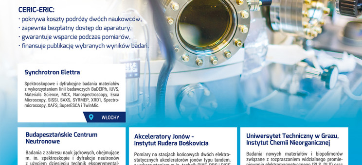 Konsorcjum Środkowoeuropejskiej Infrastruktury Badawczej CERIC-ERIC po raz kolejny zaprasza do bezpłatnego korzystania ze swojej infrastruktury badawczej.Oferta CERIC-ERIC skierowana jest do naukowców z takich dziedzin jak: biologia, medycyna, farmakologia, biotechnologia; chemia; fizyka; elektronika, nanotechnologia; geologia; ochrona środowiska i inżynieria materiałowa.