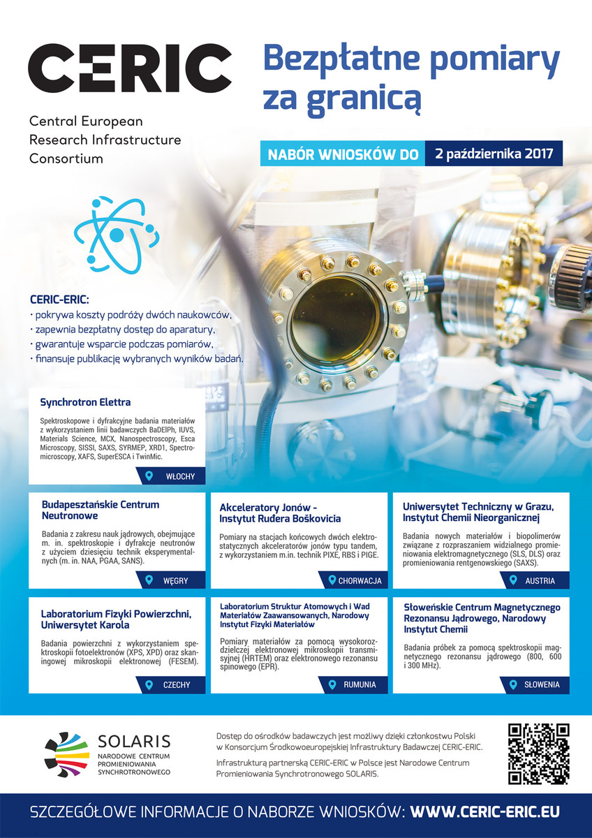 Zapraszamy do skorzystania z możliwości, jakie stwarza naukowcom CERIC-ERIC. Prosimy również o przekazanie niniejszej informacji wszystkim osobom, które mogłyby być nią zainteresowane.
