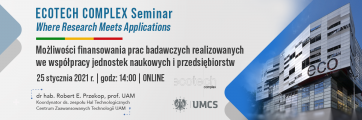 Centrum ECOTECH-COMPLEX UMCS zaprasza do udziału w seminarium pt. „Możliwości finansowania prac badawczych realizowanych we współpracy jednostek naukowych i przedsiębiorstw”. Jest to pierwsze...