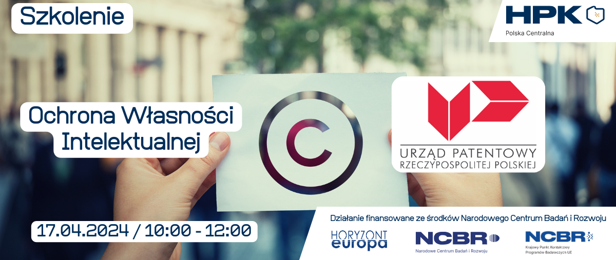 Horyzontalny Punkt Kontaktowy Polska Centralna oraz Urząd Patentowy Rzeczpospolitej Polskiej zapraszają na szkolenie online pt. Ochrona własności intelektualnej.