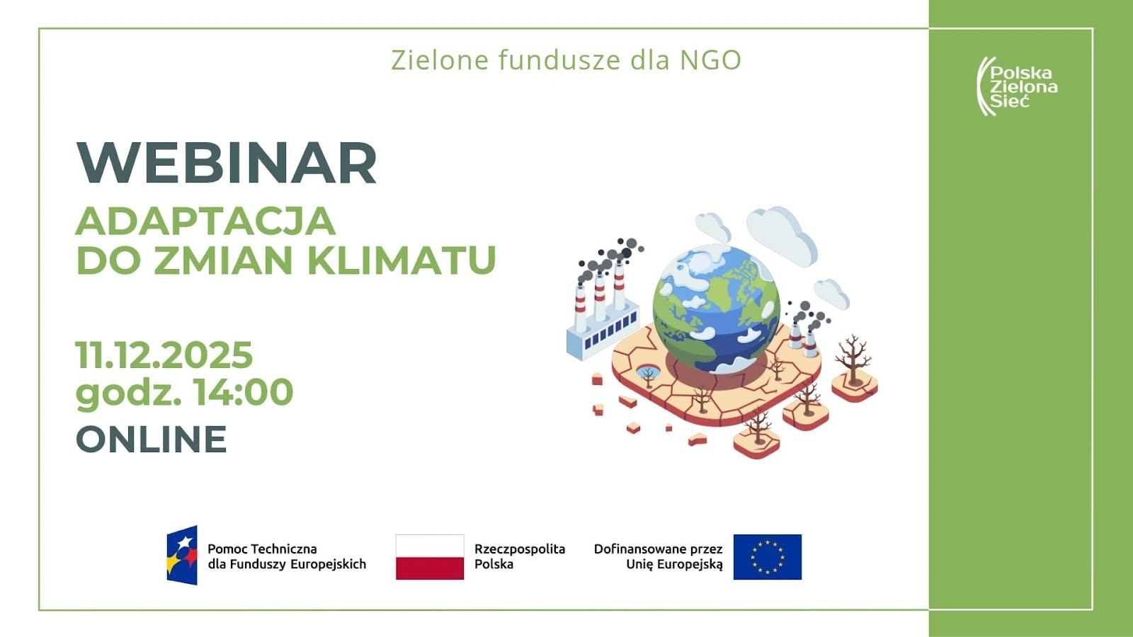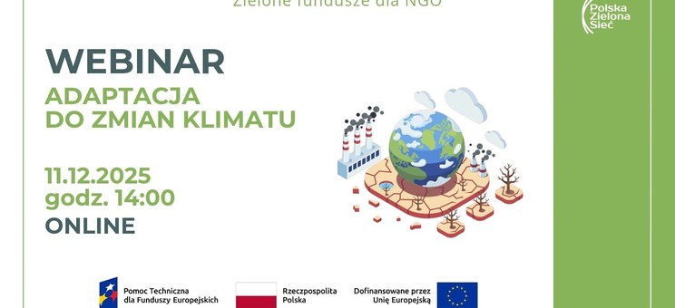Zielona Sieć zaprasza na webinar pt.: "Adaptacja do zmian klimatu". Odbędzie się on 11 grudnia 2025 w godz. 14:00-15:30.